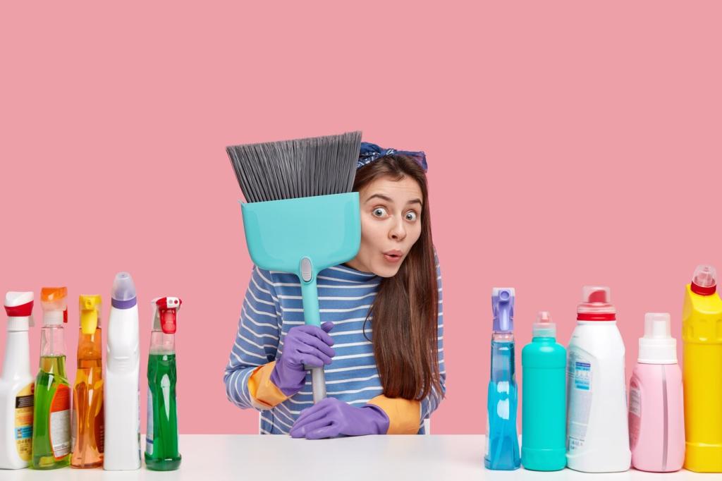 Lass Schaum arbeiten, bevor du reibst. Nutze Timer, damit du Flächen gleichmäßig behandelst und nichts vergisst. Wechsle zwischen Bürste und Tuch, sobald Schmutz gelöst ist, statt weiter zu schrubben. Weniger Druck, mehr Methode – und ein sauberes Ergebnis ohne Stress.