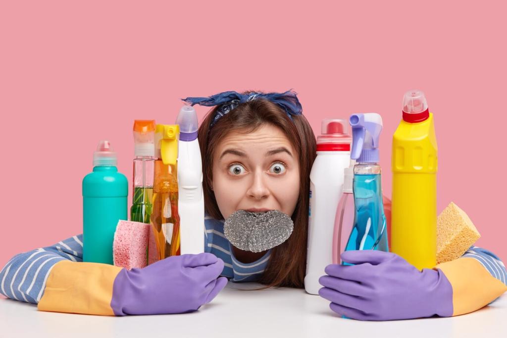 Nitrilhandschuhe schützen vor Reinigerresten, eine leichte Maske vor Aerosolen beim Sprühen. Lüfte regelmäßig, besonders in kleinen Räumen. Vermeide Sprühnebel auf Augenhöhe, arbeite bodennah mit kurzen Stößen. Teile in den Kommentaren, welche Schutzgewohnheit dir einmal wirklich Ärger erspart hat.